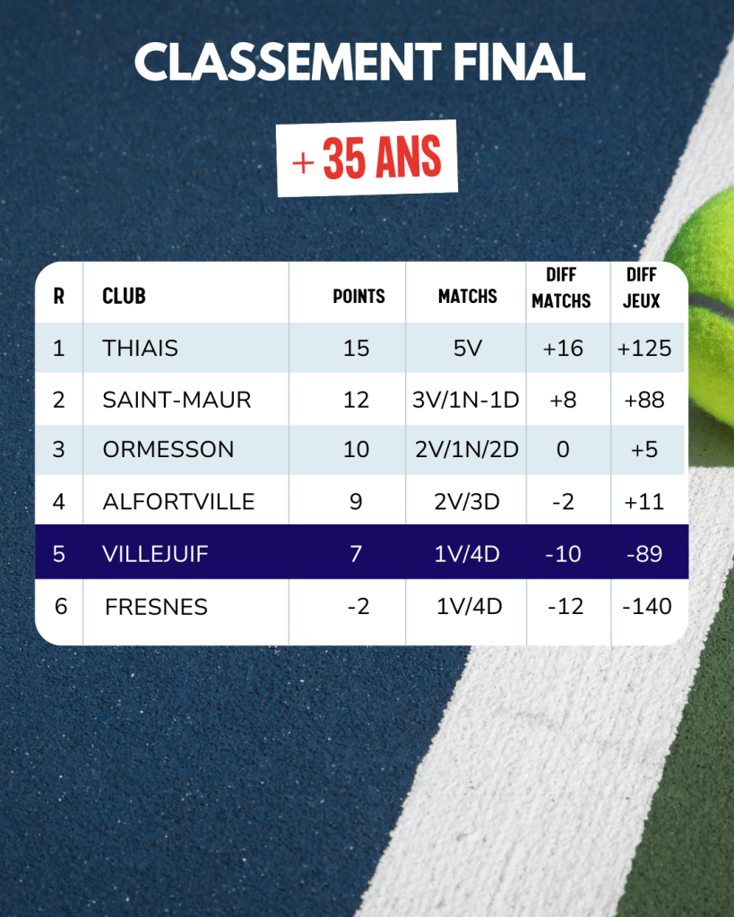 đ L’Ă©quipe des +45 a remportĂ© le championnat inter-clubs 2025, catĂ©gorie PremiĂšre division face au TC Villecresnes et montera en Excellence pour la prochaine saison !