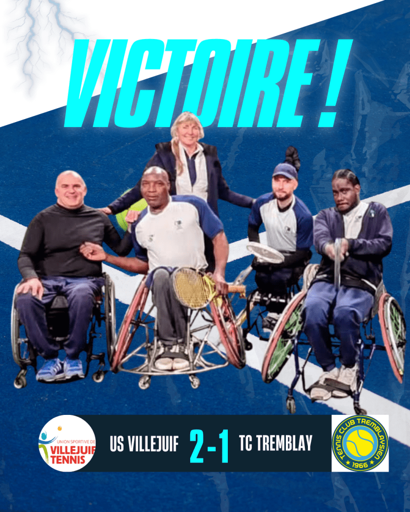 đ L’Ă©quipe d’alliance 94 de tennis fauteuil composĂ©e de Villejuif-Santeny-Roissy a battu le TC Tremblay et devient championne d’Ile-de-France !